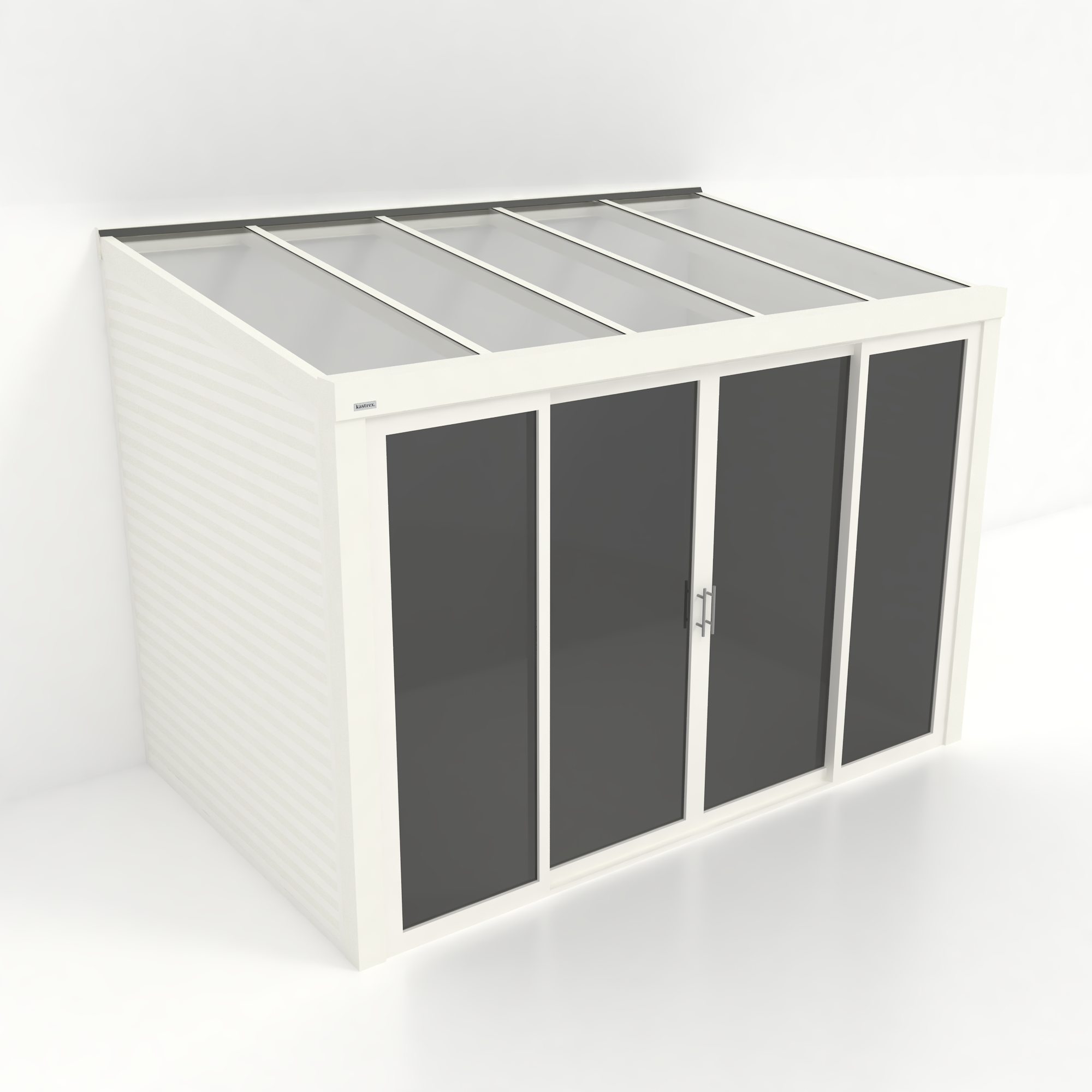 Onze tuinkamers worden vervaardigd uit hoogwaardig aluminium en zijn afgewerkt met een weerbestendige coating. Dankzij deze sterke materialen is uw Kastrex Tuinkamer volledig onderhoudsarm, bestand tegen regen, wind én felle zon. De glazen schuifdeuren zorgen bovendien voor maximale lichtinval en beschermen tegen kou, zodat u elk seizoen comfortabel zit.