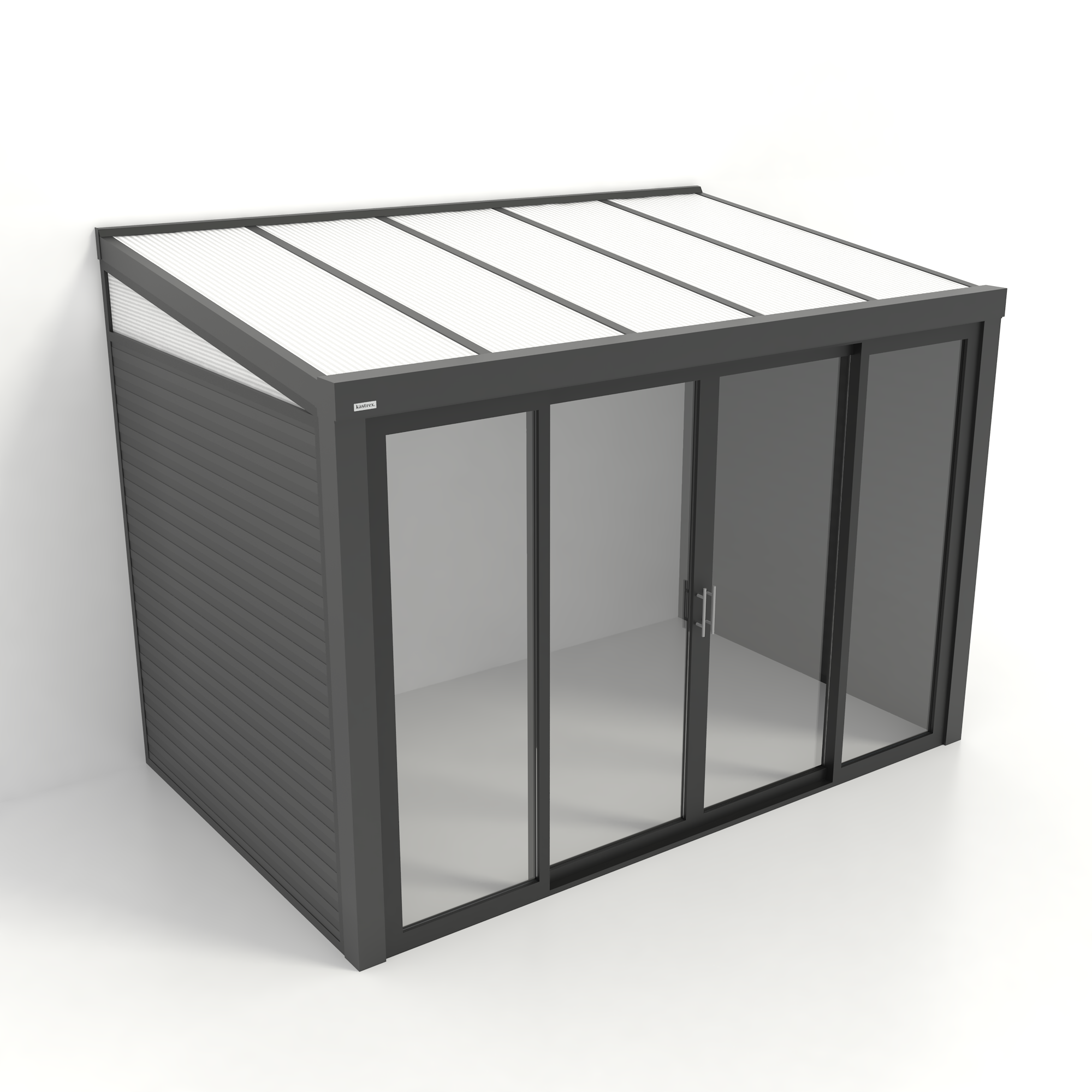Onze tuinkamers worden vervaardigd uit hoogwaardig aluminium en zijn afgewerkt met een weerbestendige coating. Dankzij deze sterke materialen is uw Kastrex Tuinkamer volledig onderhoudsarm, bestand tegen regen, wind én felle zon. De glazen schuifdeuren zorgen bovendien voor maximale lichtinval en beschermen tegen kou, zodat u elk seizoen comfortabel zit.