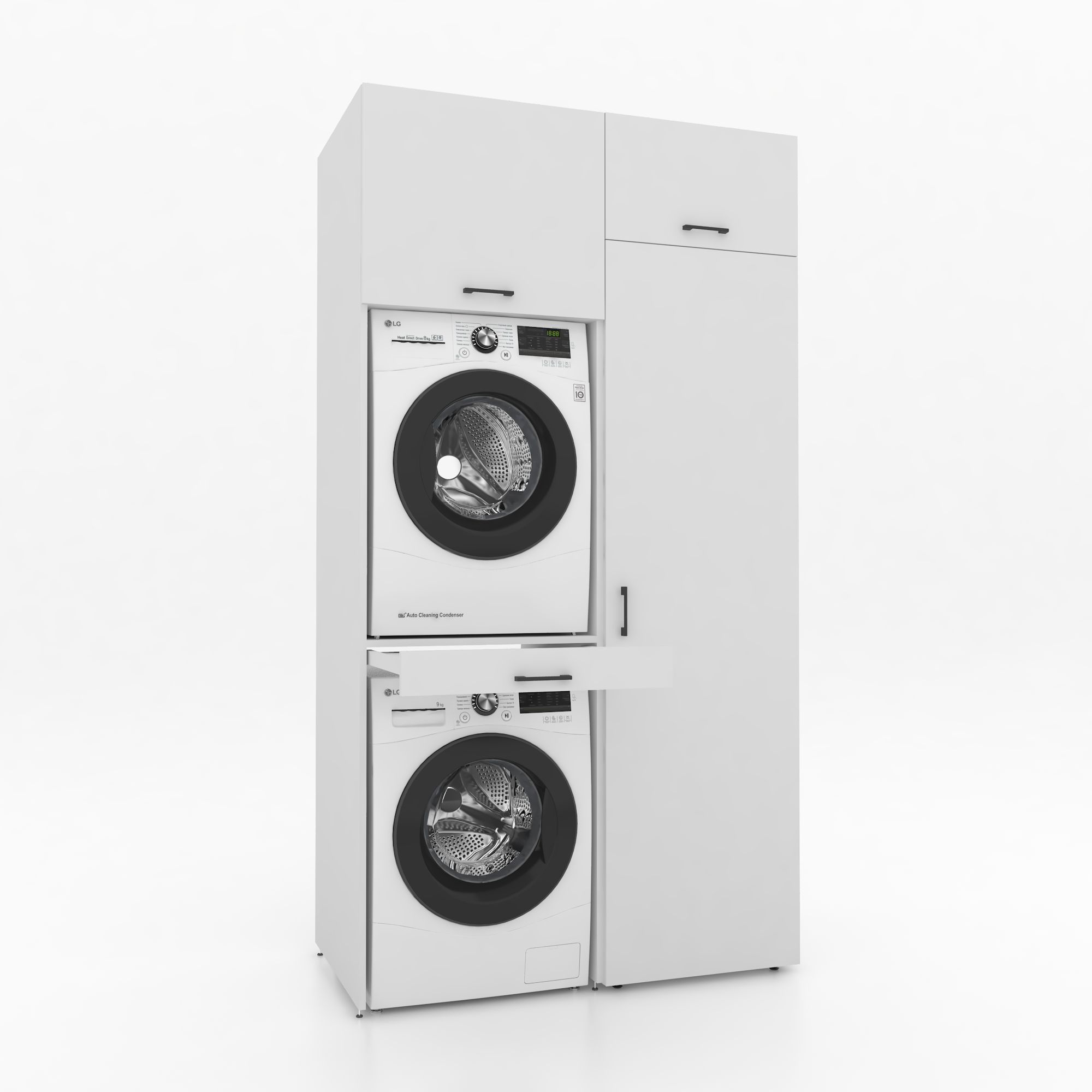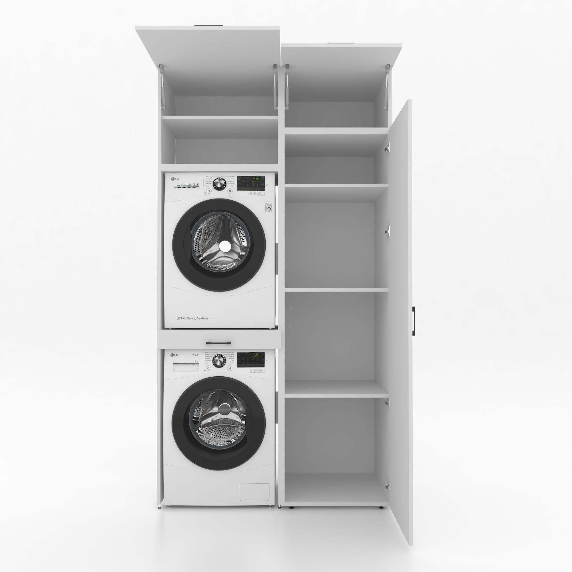 Le meuble pour lave-linge et sèche-linge est la solution idéale pour optimiser l'espace. Grâce à sa conception astucieuse, vous pouvez placer votre lave-linge et votre sèche-linge côte à côte ou l'un sur l'autre en toute sécurité. Son design épuré crée une ambiance moderne et moderne, où fonctionnalité et esthétique se conjuguent harmonieusement.