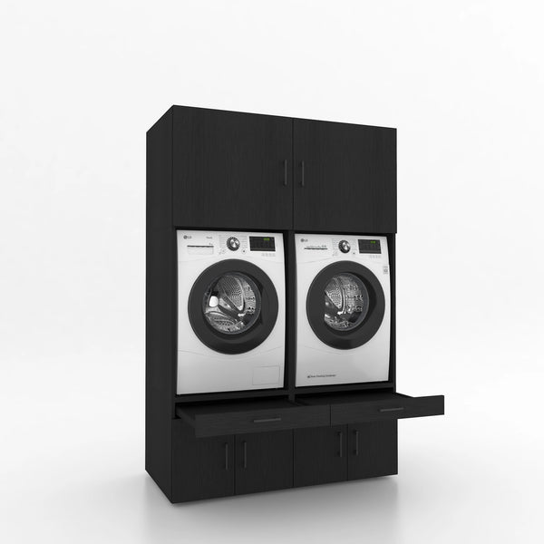 Wasmachinekast 2 delig - 134x205x67cm – Zwart Eiken
