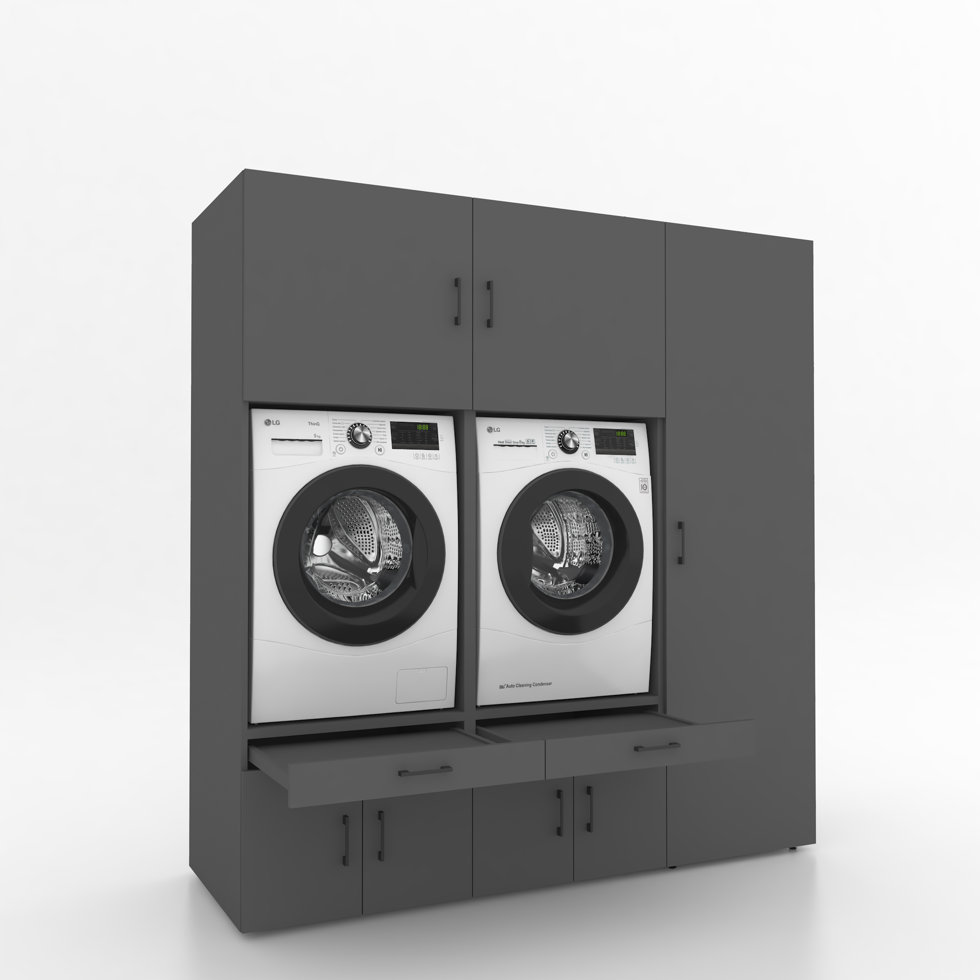 Wasmachinekast 3 delig - 194x205x67cm – Antraciet