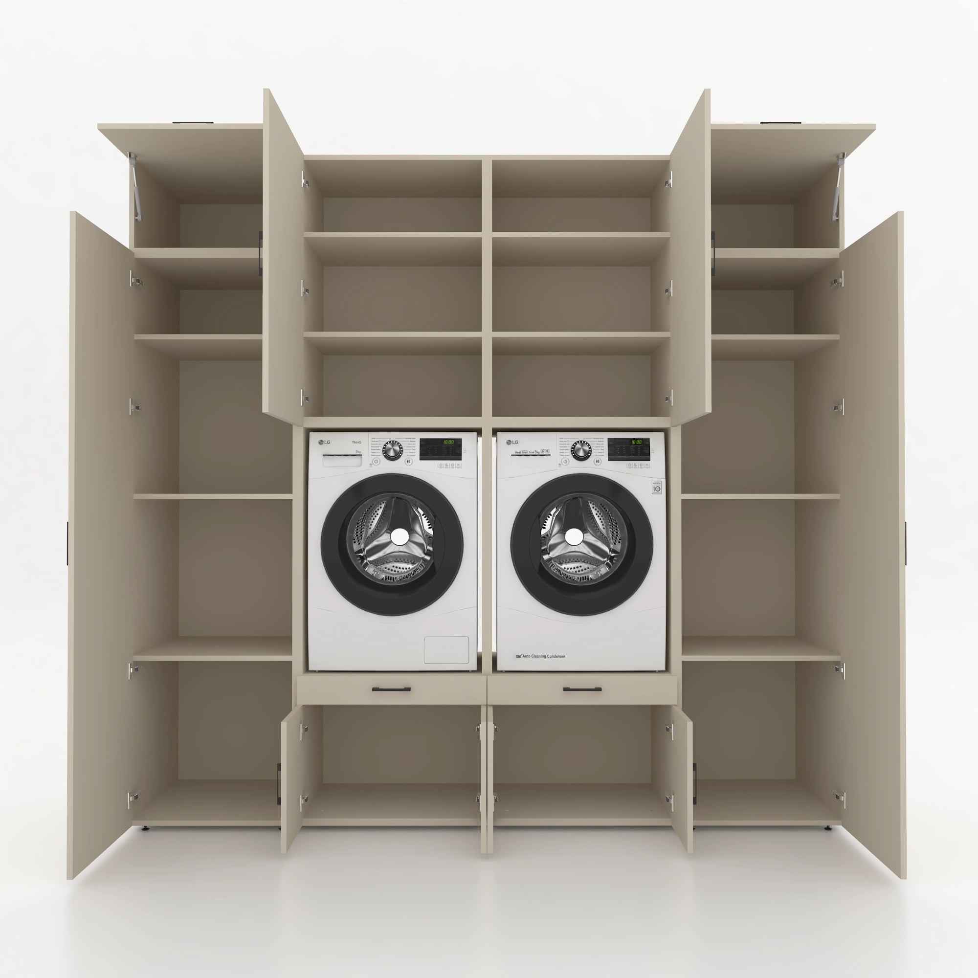 Wasmachinekast 4 delig - 254x240x67cm – Greige